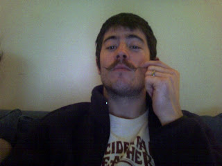ok not really. I'm not that bossy. (Obviously since he had his mustache for 1 1/2 months).... BUT TODAY, Feb. 3, 2009 at approximately 6 30 PM my month and a half long dream came true. Adam has shaved his mustache. It's gone, all over, a wrap, brought about, brought to pass, buttoned up.... he's clean shaven!